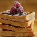 - Ανακατεύουμε το αλεύρι με το μπέικιν και το ρίχνουμε στο υγρό μέιγμα.